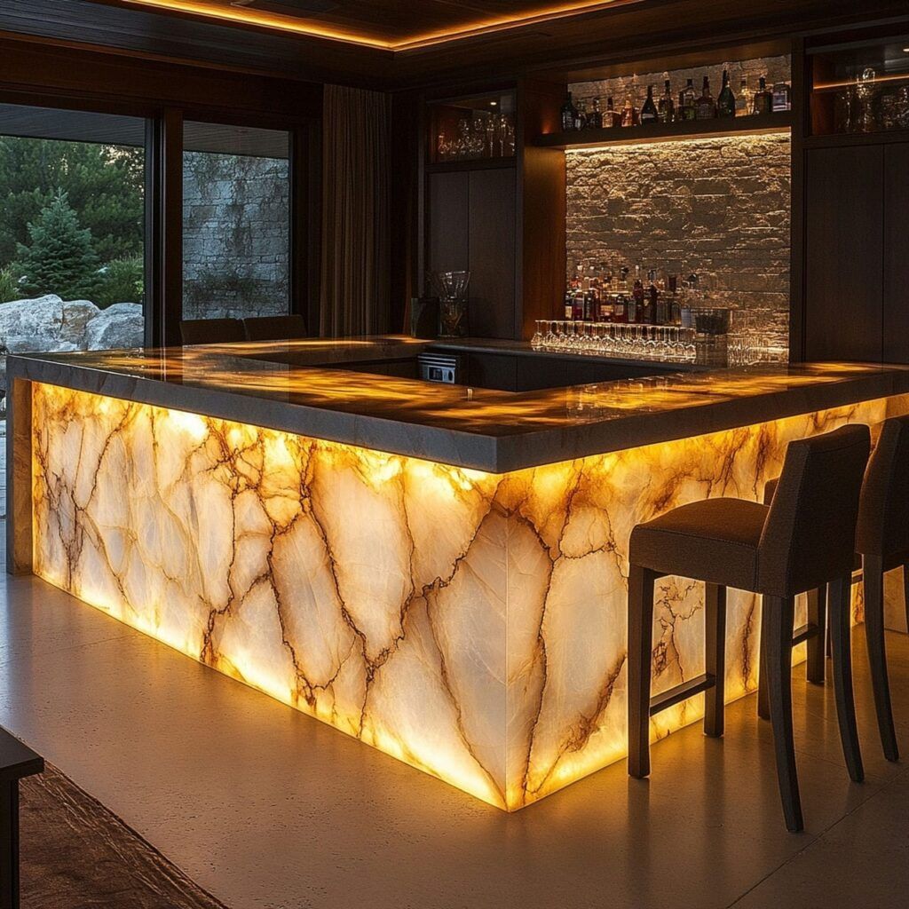 Alternatively, quartzites have natural textures and patterns that differentiate it from quartz which can range from freckled organic movement to caramel crystallized veins. Some parts of quartzite may also be translucent, allowing light to pass through, becoming a beautiful option for backlit ideas and/or areas. Quartzite offers an expansive range of patterns, tones, and movement that cannot be replicated through manufacturing.